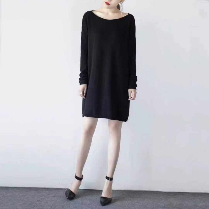 亏本清仓314件休闲大版型圆领长袖针织连衣裙。面料柔...