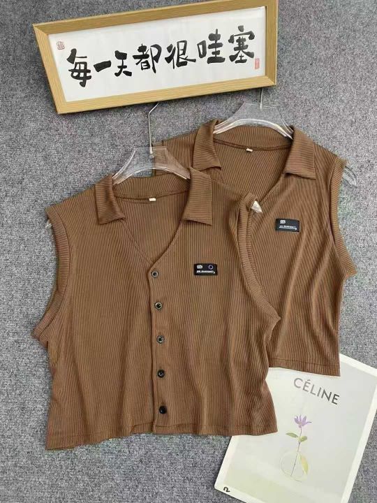 美式复古靓妹背心317件,清5.9,Polo领,胸口小标,两...