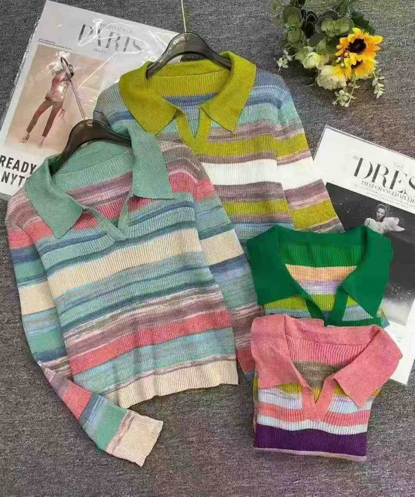 秋季新款POLO领撞色彩虹条纹微胖MM设计感时尚宽松长袖套头毛衣羊毛衫,独立包装,均码宽松款面料软糯Q弹,800件,全清8.9元超低价秒杀!分货加一!