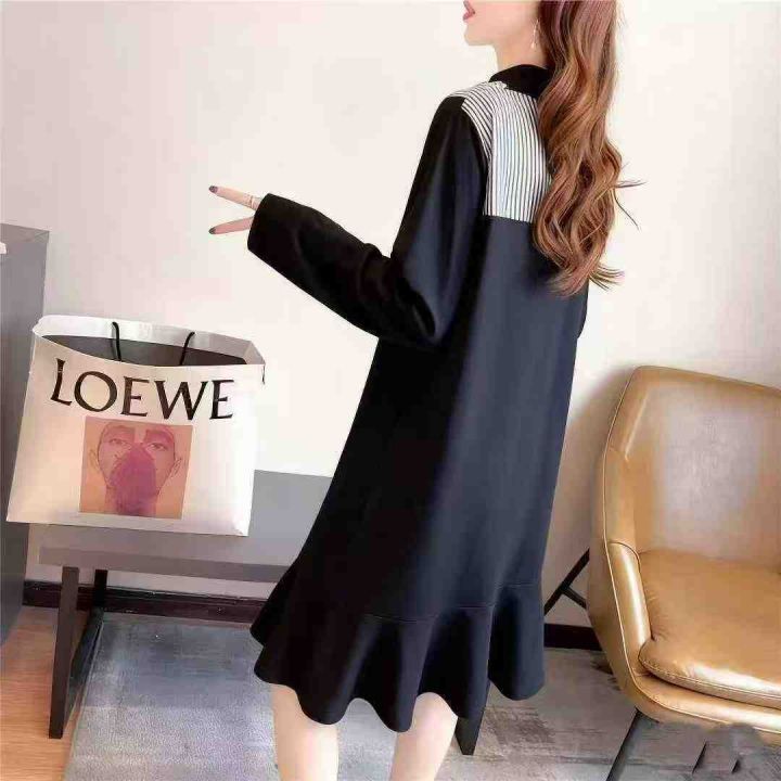 秋季新品品牌原单大码女装纯棉法式polo领时尚减龄连衣...