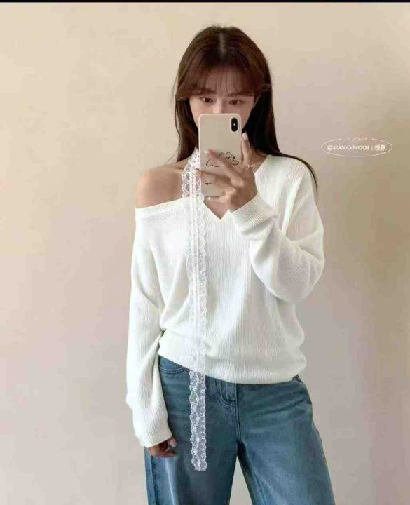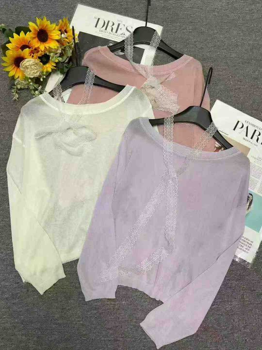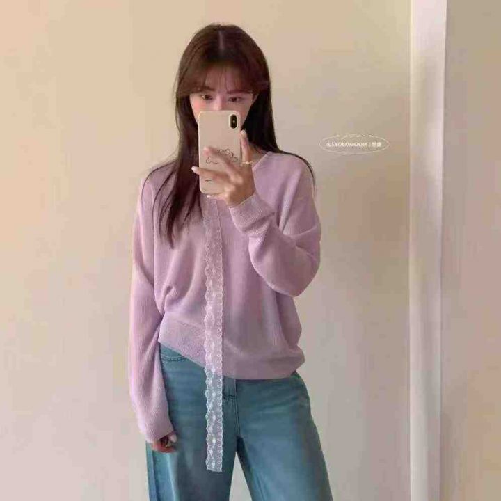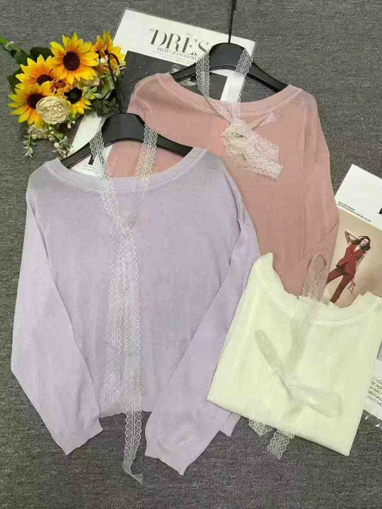 秋季新品十三行温柔甜美蕾丝飘带宽松慵懒风圆领长袖针织衫,独立包装,均码面料柔软舒适,宽松版,78件,全清6.9元超低价秒杀!