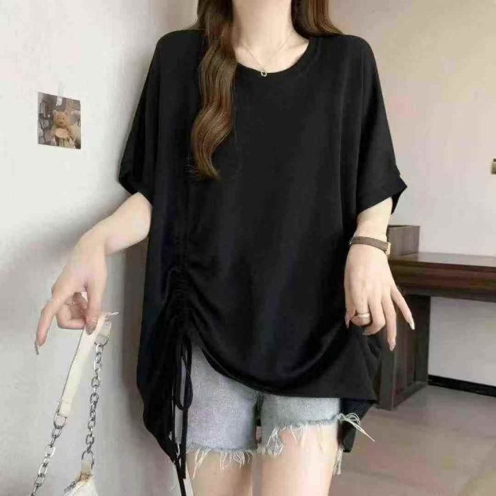 网红开衩不规则中长款中袖抽绳防晒衣t恤女夏洋气时髦防晒上衣潮,数量500左...