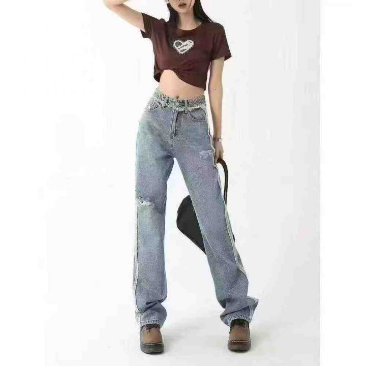 春夏高品质高街破洞窄版设计款阔腿牛仔裤,独立包装带...