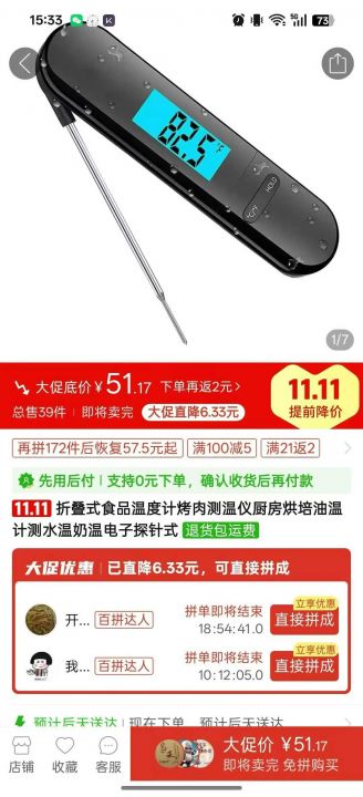 食品温度计,入仓1500pcs,低价抛货处理