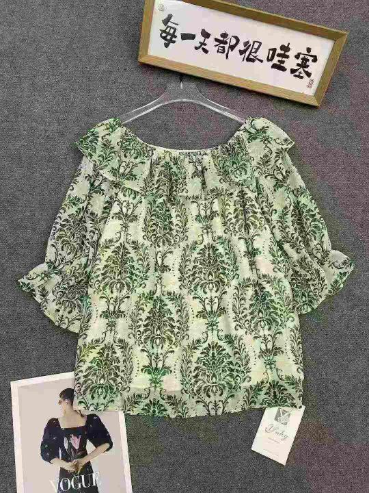 雪纺复古上衣321件7.8,一字领荷叶边,可多种穿法,面料柔软舒适,有内衬,...