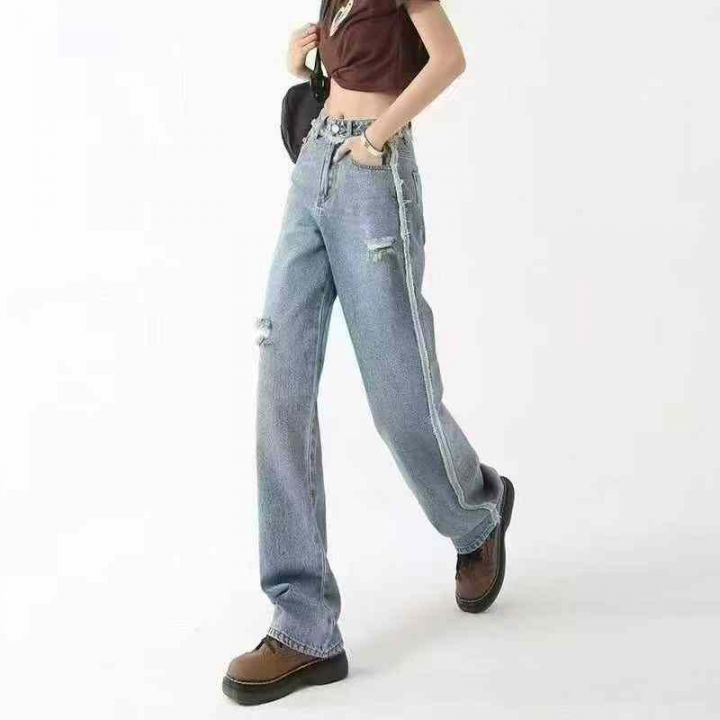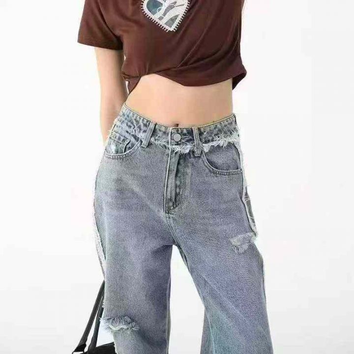 春夏高品质高街破洞窄版设计款阔腿牛仔裤,独立包装带...