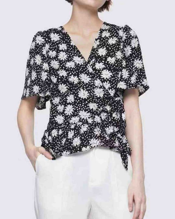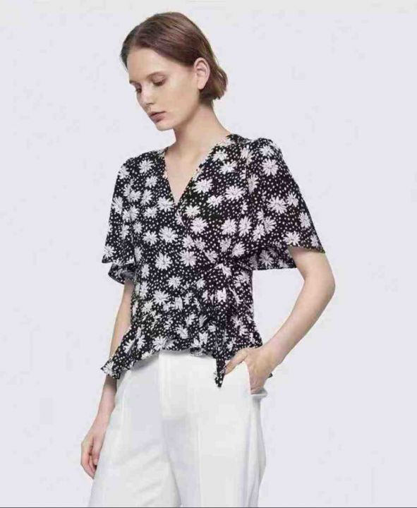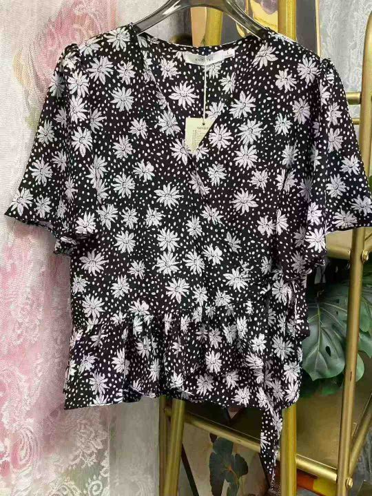 夏季新款品牌原单法式复古碎花雪纺小衫,独立包装带吊...