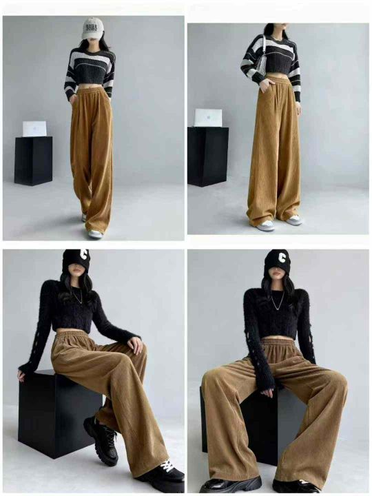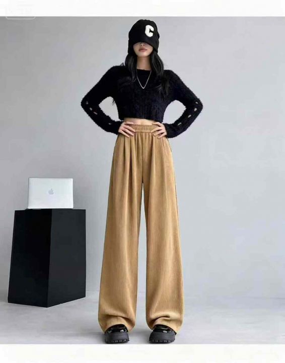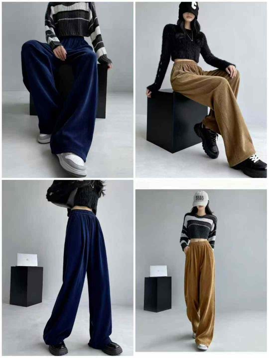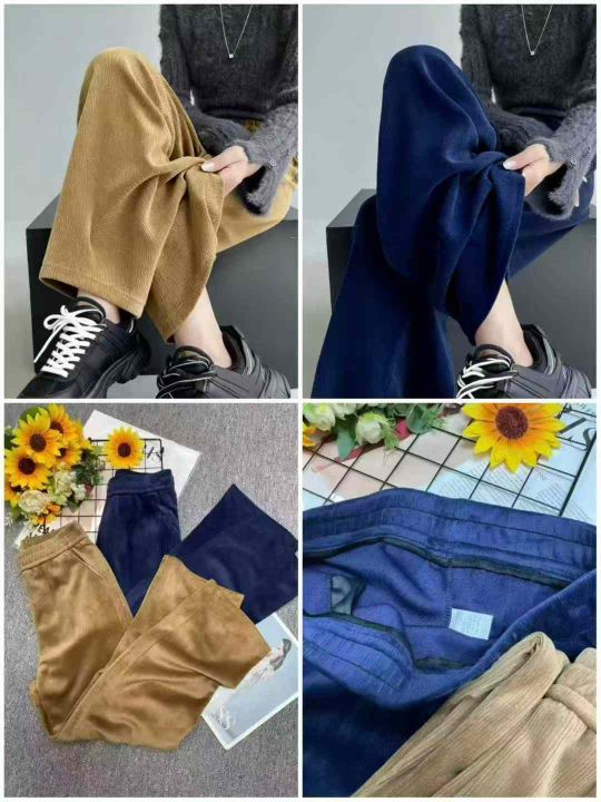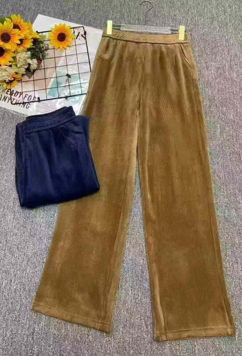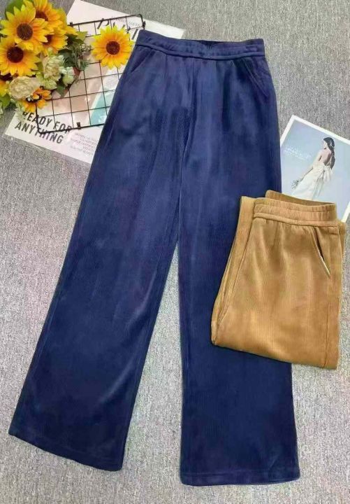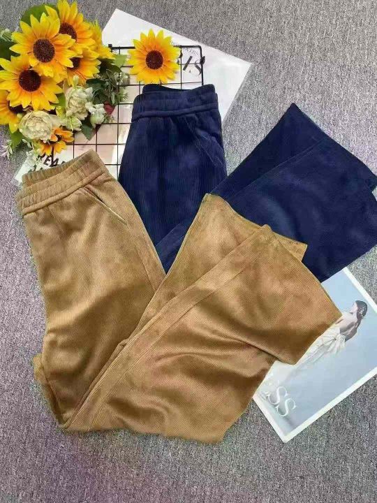 秋冬新款大码女装雪尼尔松紧腰休闲裤,有长裤和9分款...