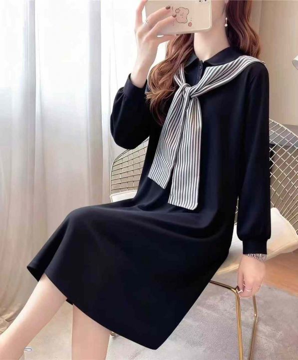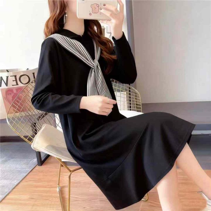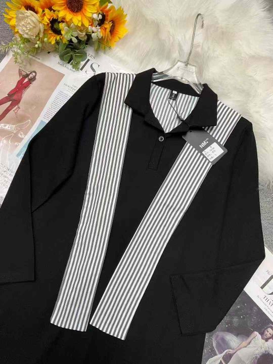 秋季新品品牌原单大码女装纯棉法式polo领时尚减龄连衣...