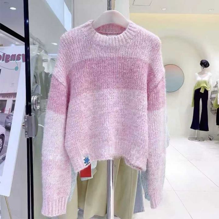 全清10.9,奥特莱斯清仓针织加厚上衣日系慵懒秋冬软糯扎染渐变拼色厚款宽松,单款单色。粉色均码,共22件,不分货