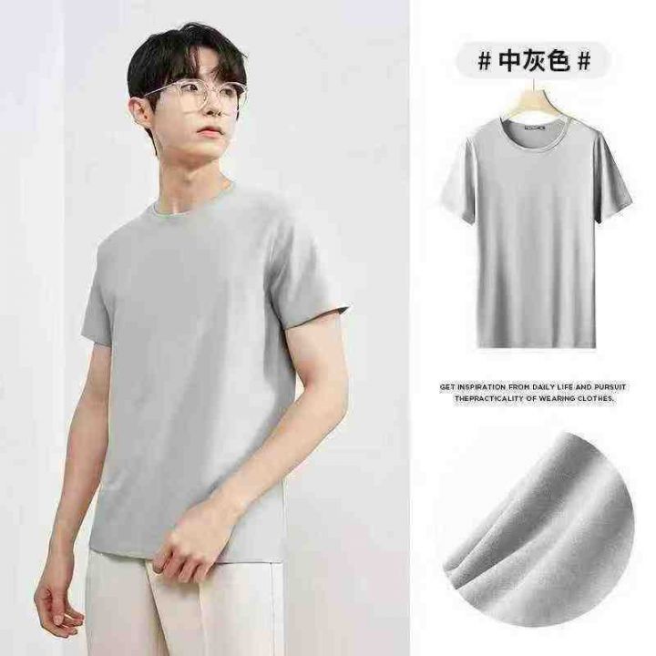男士冰丝短袖T恤速干半袖新款夏季圆领上衣纯色体恤(后领包边)码数 :S-XL...