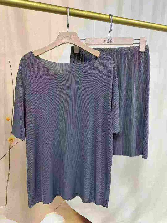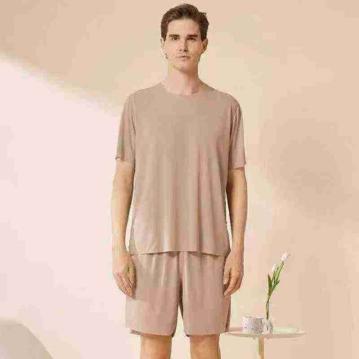 夏季男女同款冰丝家居服,情侣睡衣圆领短袖短裤睡衣套装,整款,独立包装,3100套,2-4-6码