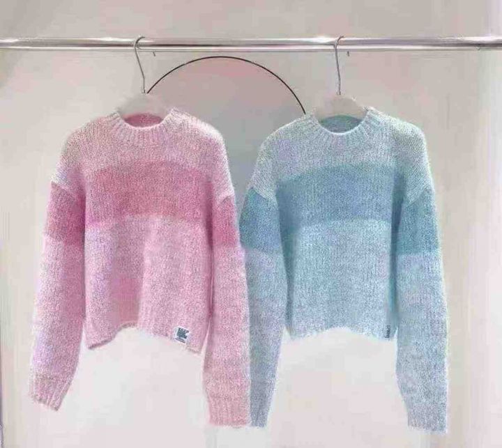 全清10.9,奥特莱斯清仓针织加厚上衣日系慵懒秋冬软糯扎染渐变拼色厚款宽松,单款单色。粉色均码,共22件,不分货