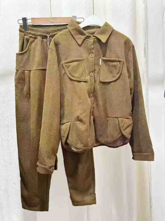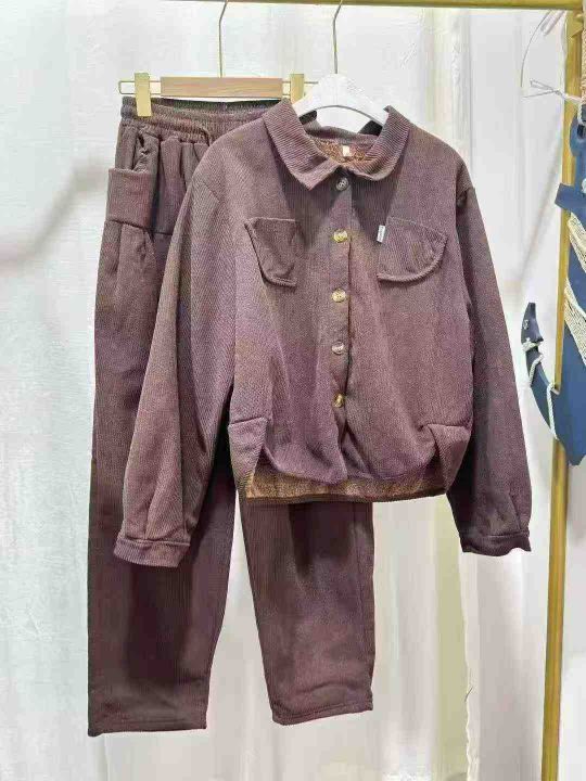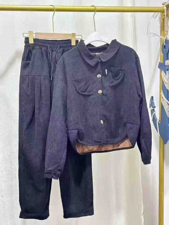 翻领灯芯绒保暖套装女2025冬季加绒加厚宽松显瘦卫衣直筒裤两件套,数量230套,码数mlxl,独立包装,全清18.8元