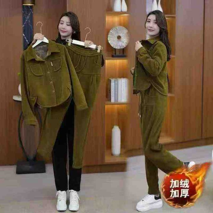 翻领灯芯绒保暖套装女2025冬季加绒加厚宽松显瘦卫衣直...