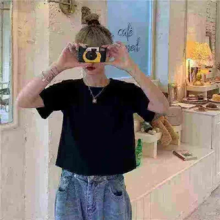 662件,纯色短袖t恤女宽松韩版圆领半袖学生显瘦短款露脐上衣夏,工厂新货没...
