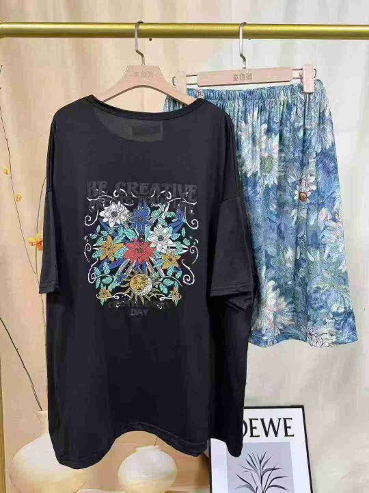 男士夏季薄款牛奶丝印花睡衣套,潮牌美式宽松休闲可外穿短袖T恤套装,独立包装,315套,码数4码.6码