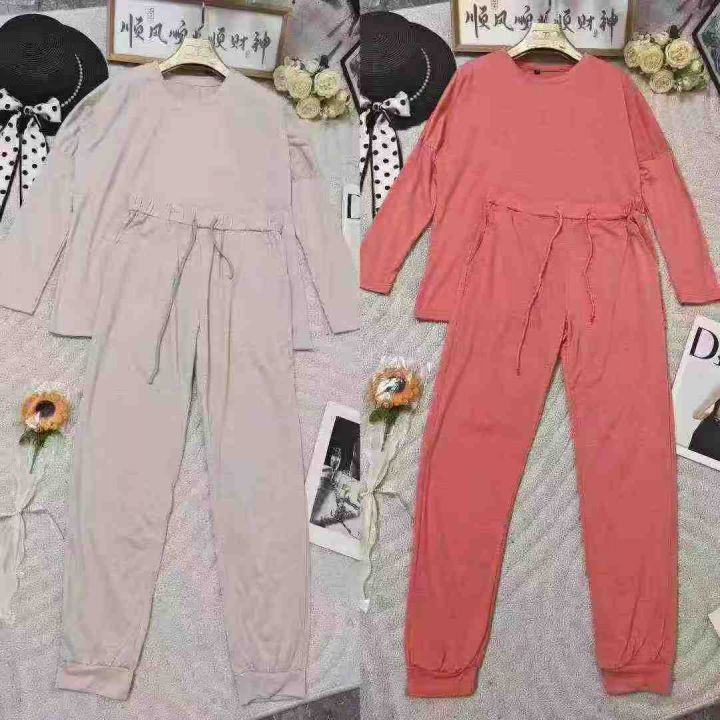 码数S一3XL,10套1包装,薄款单面棉面料,袖子拼接设计,裤子束脚腰头带系绳,有裤兜,面料带微弹