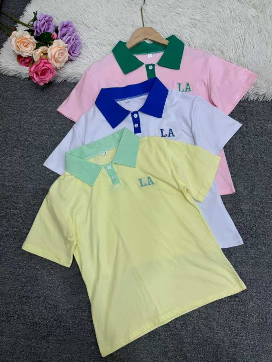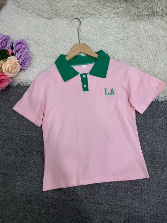 323件,夏季纯棉polo领女t恤短袖宽松翻领学院新款撞色...
