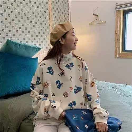 棉质秋季宽松卫衣60件7.9,小恐龙印花,面料小毛圈,...