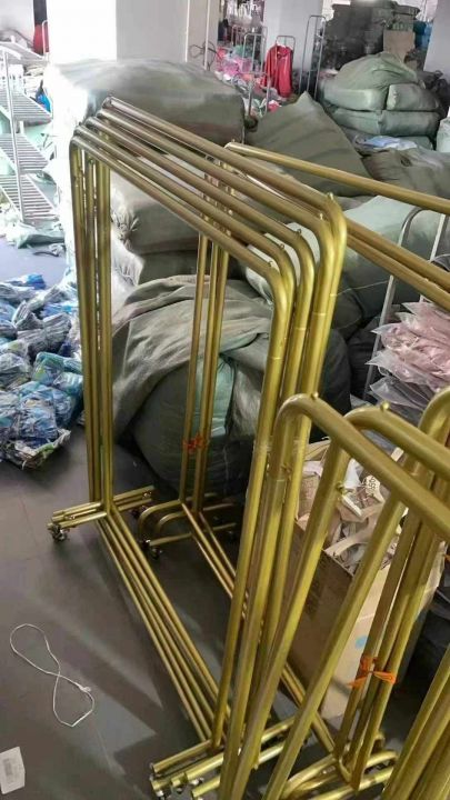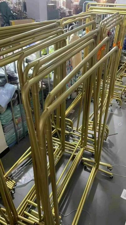 [太阳]99元一个!,金色货架!可分货!总共60个9.5成新展示架,服装店展示架成人男装女装童装货架专用金色衣架落地网红直播间拍照挂衣架带轮!两个款,第一款高1.5米,长1.15米,第二款,高1.35米,长1.2米外地发货要可拆架子发货!全部带轮子!全国全球可发货!可分货!分货不加价!