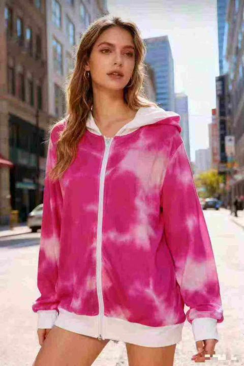 天猫仓回收3874件多巴胺扎染轻薄款针织衣休闲连帽拉链外套,均码可穿80-130斤。吊牌价688元,版型很好。质量款式非常好,全部独立包装带吊牌,分货➕1