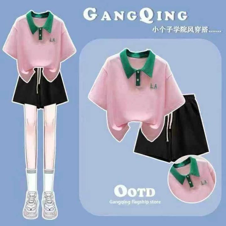 323件,夏季纯棉polo领女t恤短袖宽松翻领学院新款撞色...