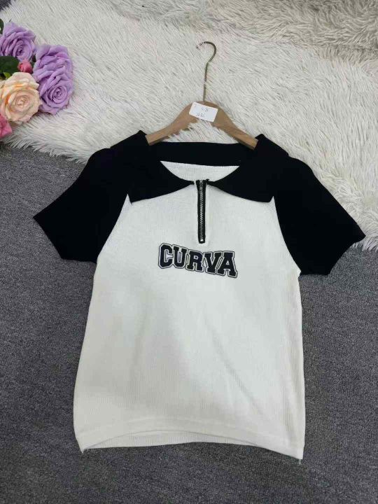 28件,美式复古polo领正肩短袖针织T恤女,夏季设计感小众修身短款上衣,独立包装,码数S,全清5.8元
