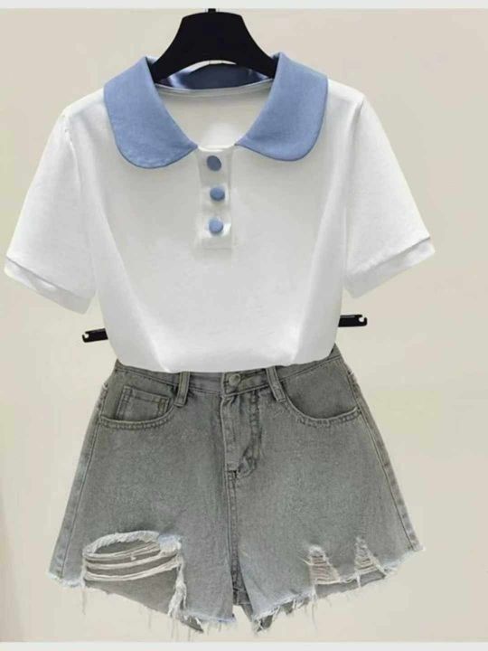 301件,纯棉夏季清新宽松遮肉套装女新款学院风POLO领T恤衫,独立包装,码数M-2XL,全清5.8元,分货➕0.5