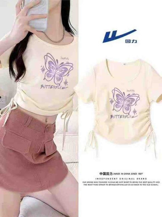 ☕️整款辣妹短袖t恤女夏季新款抽绳修身短款夏日多巴...
