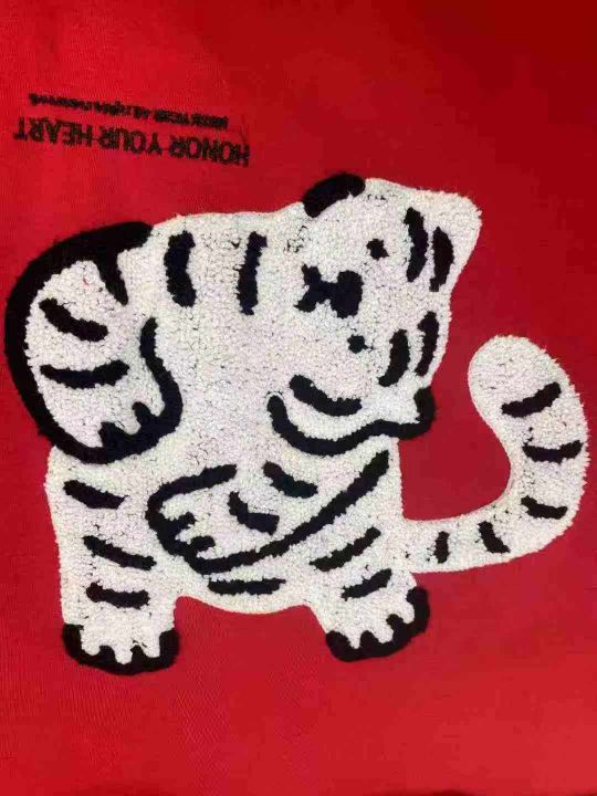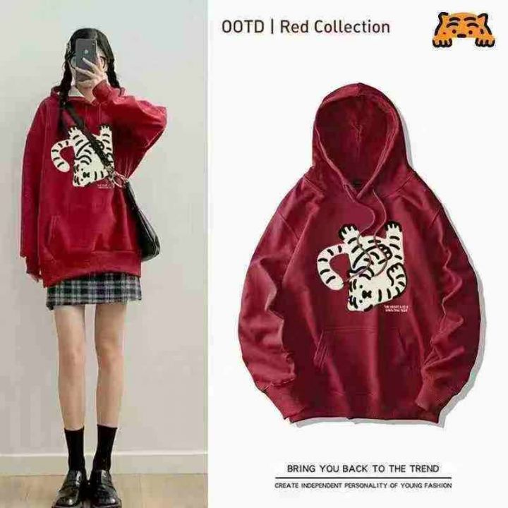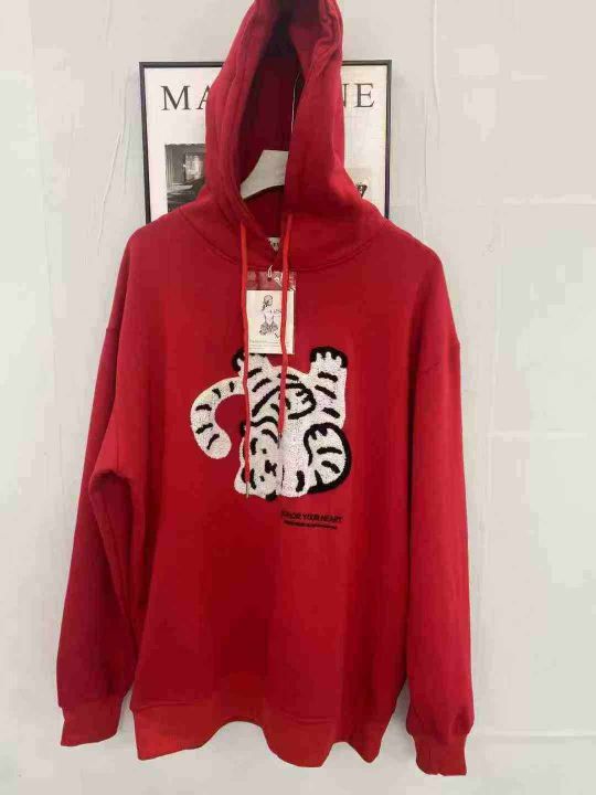 1530件男女秋冬毛巾绣小老虎减龄休闲连帽卫衣 单款两色 大货以红色为主 有加绒和不加绒(不加绒多) SML码(XL很少) 独立包装 分货+1