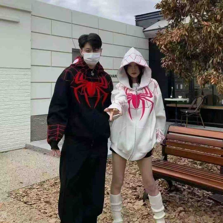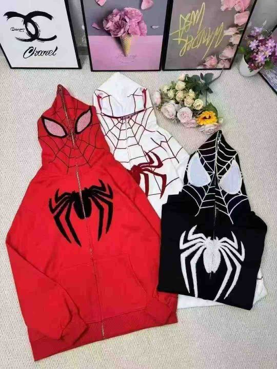 国潮痞帅炸街蜘蛛刺绣男女款连帽开衫卫衣外套260件m-2xL独立包装全清16分货加一
