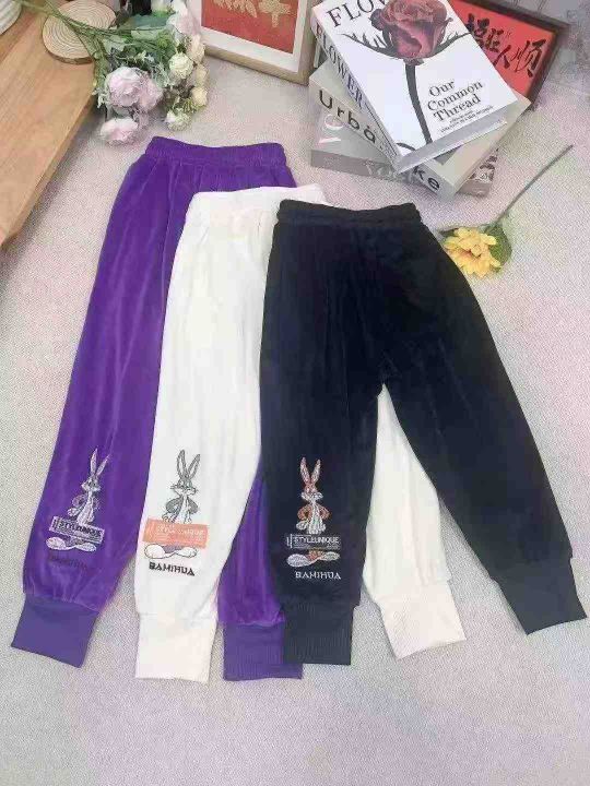 韩版卡通男女中大童金丝绒休闲运动裤.面料柔软亲肤单款三个色·独立包装1-6码760条全清5.5分货加0.5