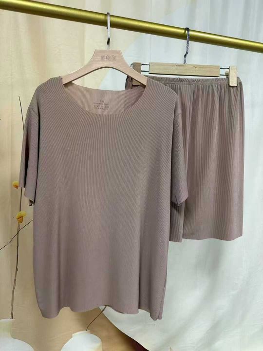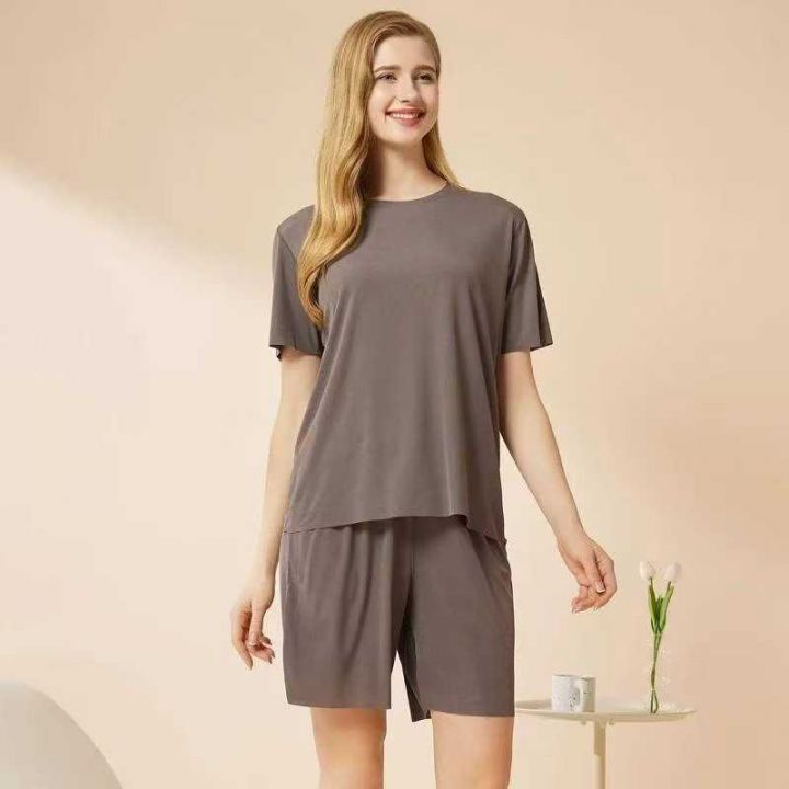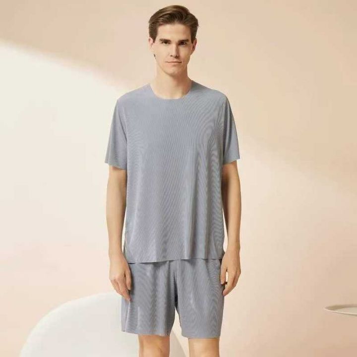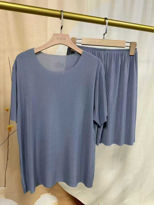 夏季男女同款冰丝家居服,情侣睡衣圆领短袖短裤睡衣套装,整款,独立包装,3100套,2-4-6码