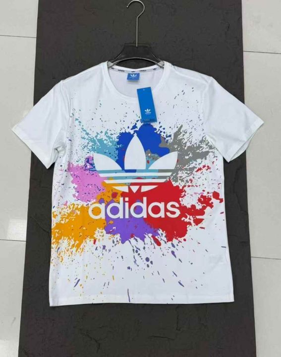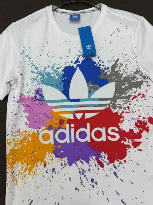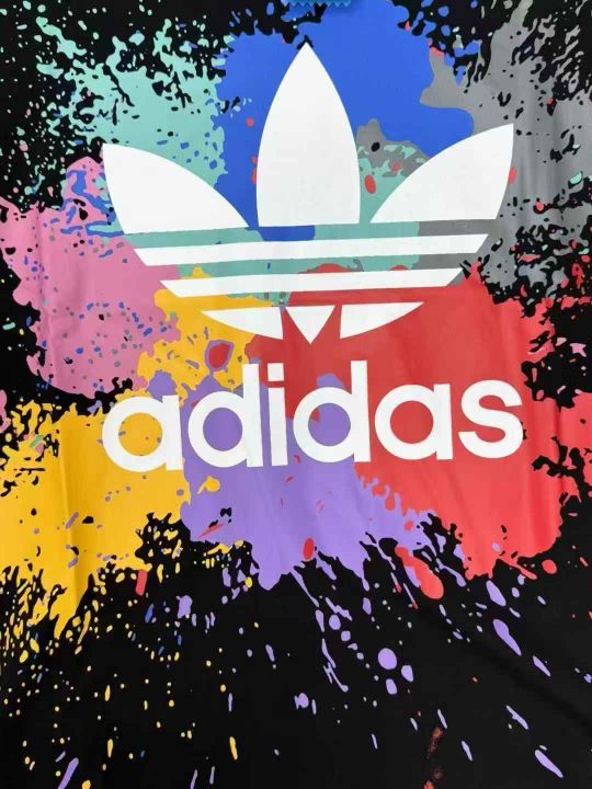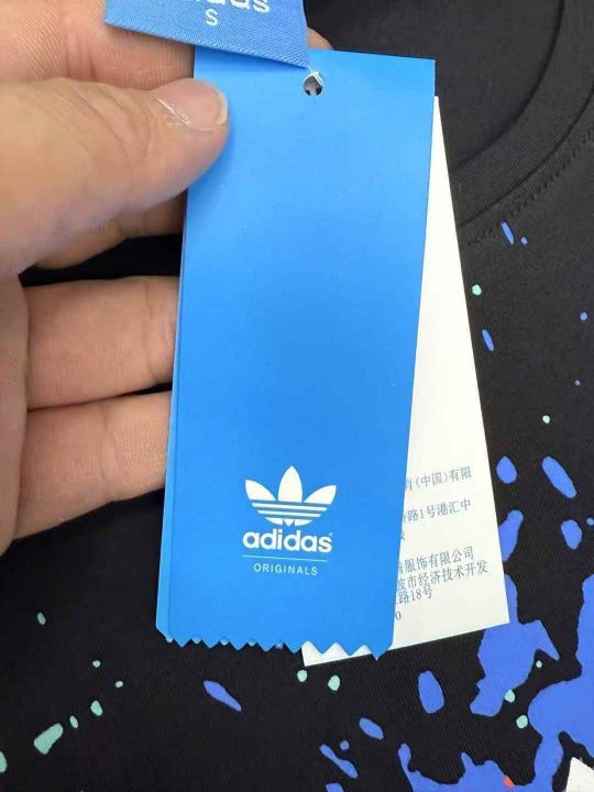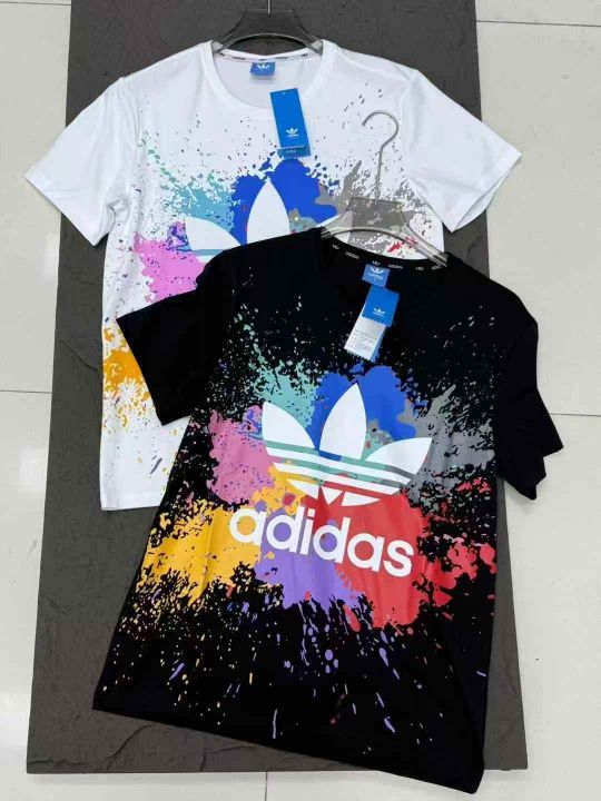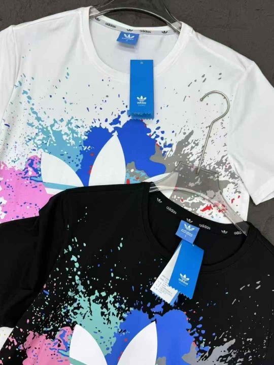 ADIDAS三叶草喷墨夏季情侣短袖宽松男女同款 宽冰爽棉190克 1500件 黑色 白色 五码 尺码齐 配清 500起配