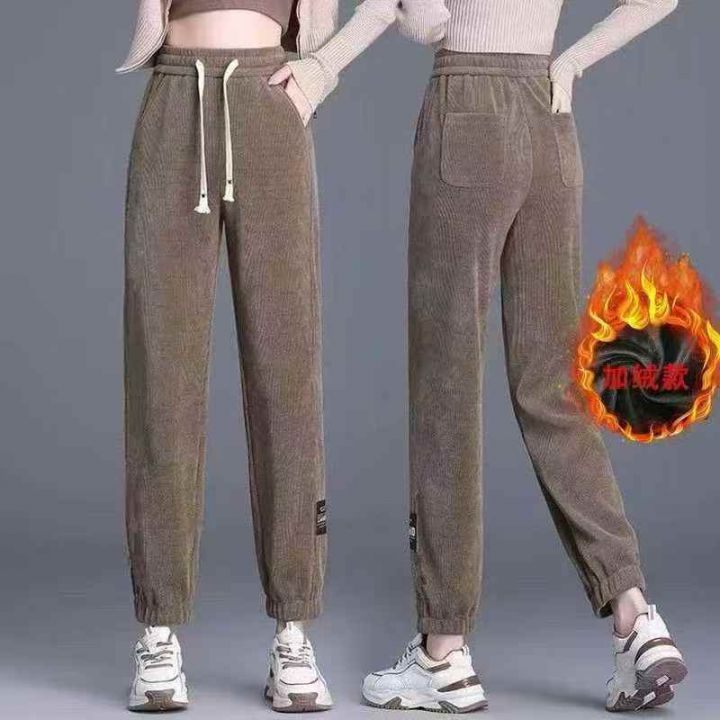 冬季新款加绒哈伦宽松毛裤时尚束脚百搭休闲裤冬天裤子,整款两色,独立包装...