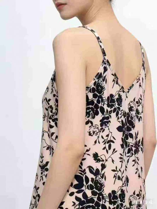 欧美跨境2025夏季短袖女式新款v领宽松版型休闲印花吊带连衣裙,数量95件,...