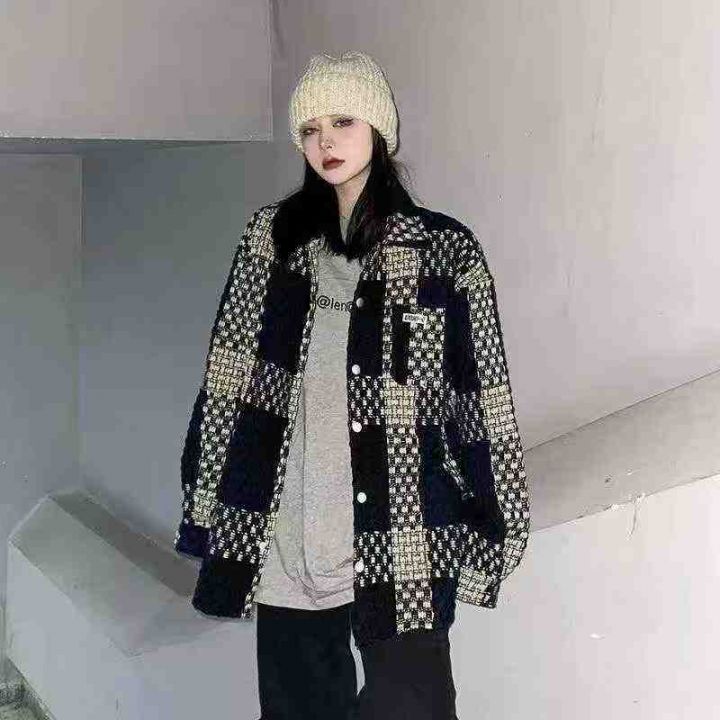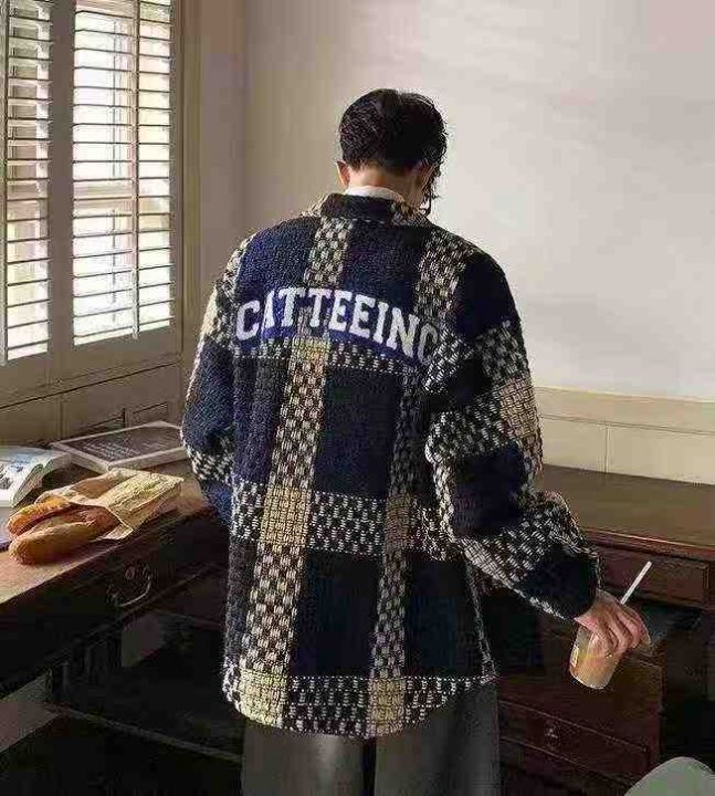 复古撞色编织格子外套271件19.8,宽松版情侣款,品质...
