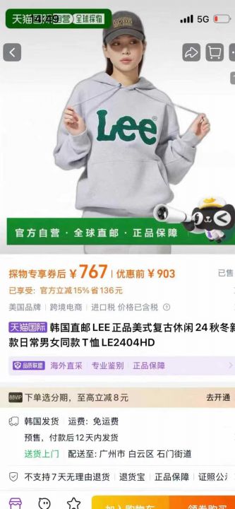 5000多件Lee卫衣,克重做工好,公司货。 货号:...