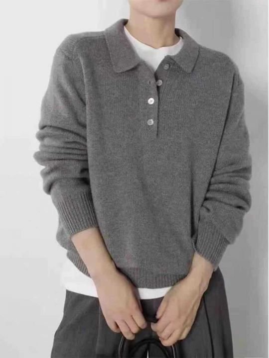 秋季新品净版简约男女同款休闲polo领套头毛衣,独立包...