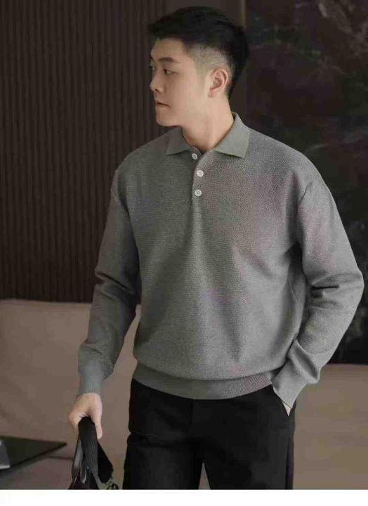 秋季新品净版简约男女同款休闲polo领套头毛衣,独立包...