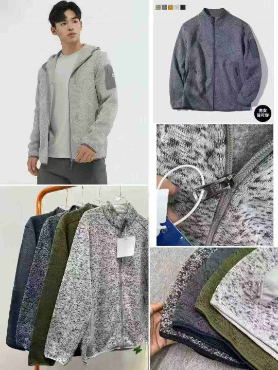 立领抓绒外套男保暖户外运动登山徒步开衫针织夹克外套,独立包装,码数M-4XL,整款四色,数量395件,分货加1,货号1027#61