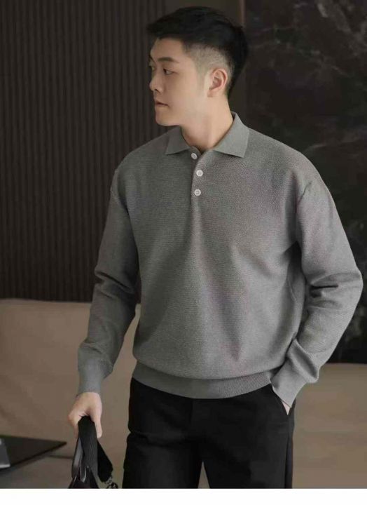 秋季新品净版简约男女同款休闲polo领套头毛衣,独立包...