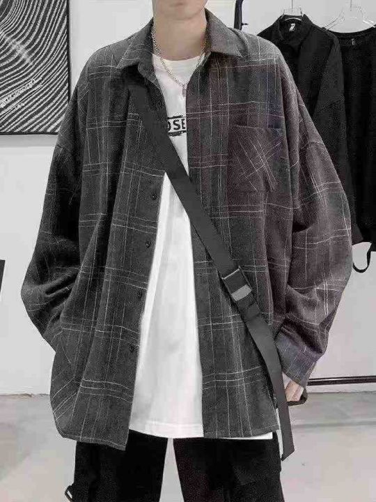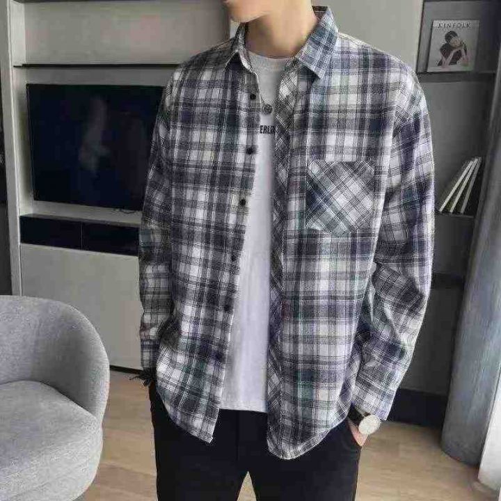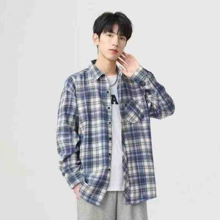 格子长袖衬衫男士春秋季新款潮牌时尚宽松休闲衬衣外套 独立包装 315件 码数M-2XL。 货号:1303