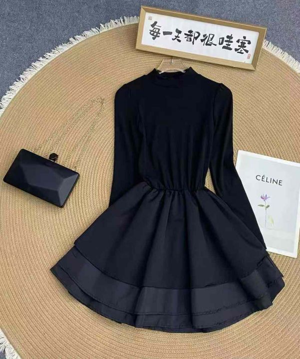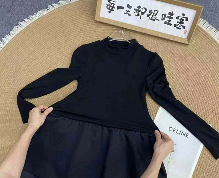 气质半高领连衣裙228件9.9,面料高弹力,拼接设计,收...