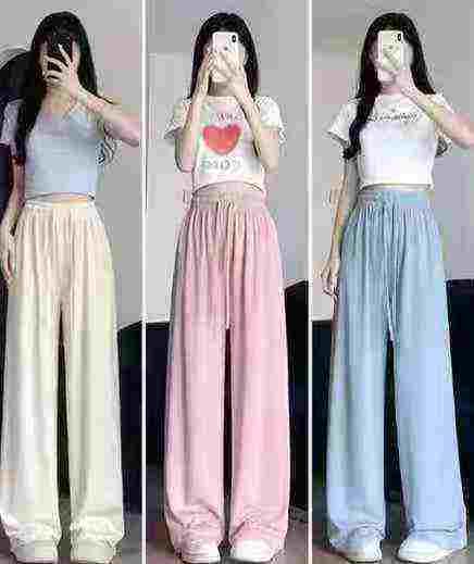 [月亮]:夏季休闲冰丝抽绳松紧腰女裤