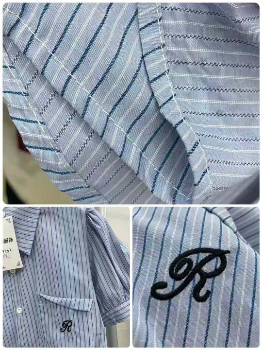 条纹短袖衬衫64件6.9,泡泡袖,褶皱收腰,字母图案刺...