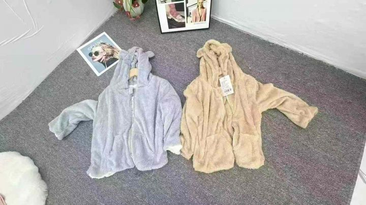 儿童拉链毛绒连帽外套,有口袋,独立包装带吊牌,大货图9两个颜色为主,有几件个别的颜色,码数110-160。