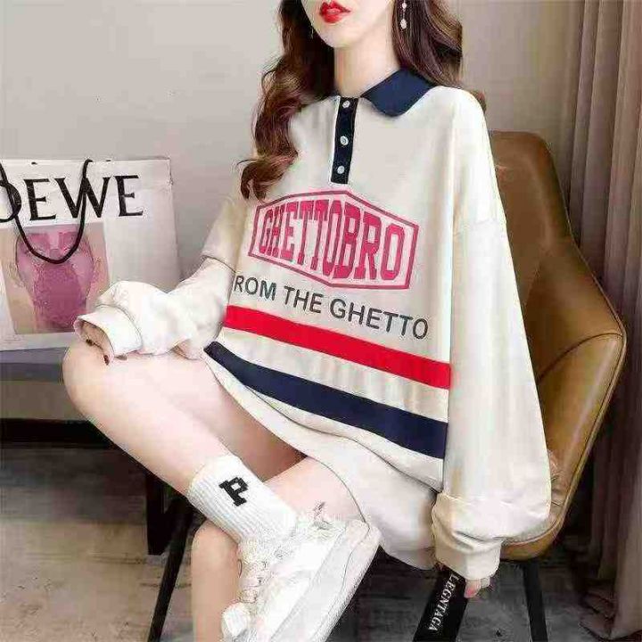 天猫在售款140件左右高品质夏季女装Polo领设计拼色字母印花宽松短袖T恤,后领包边,单款两色,码数M-2XL,独立包装