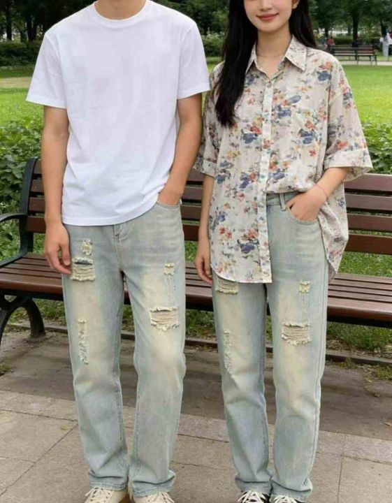 春秋新款男女同款复古蓝破洞设计款牛仔裤,独立包装带吊牌,码数S-XL码, ...